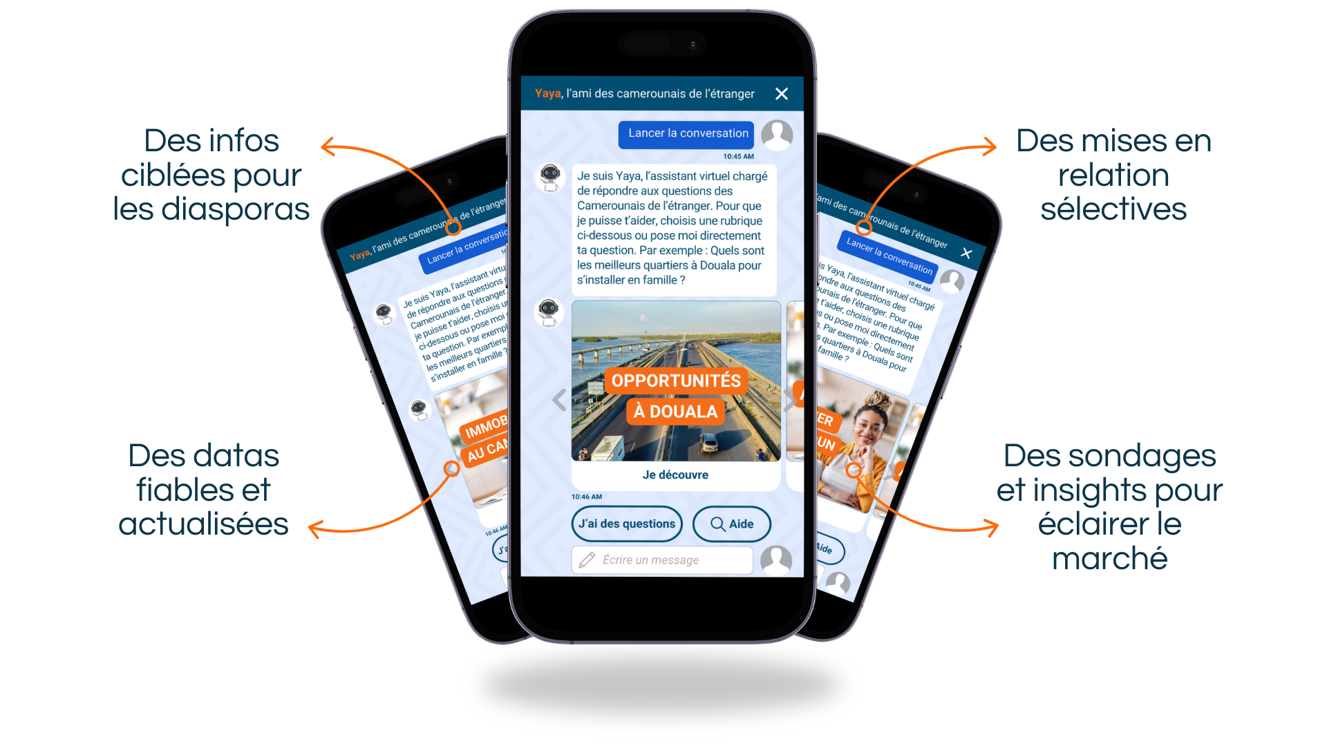 renforcer la chaîne d’information digitale (et de conseils) des diasporas en intégrant la puissance de l’IA. S’engager concrètement à équiper graduellement + de 20 pays africains via notamment les opérateurs télécoms, d’un chat GPT formé et constamment monitoré pour les besoins clés de la diaspora